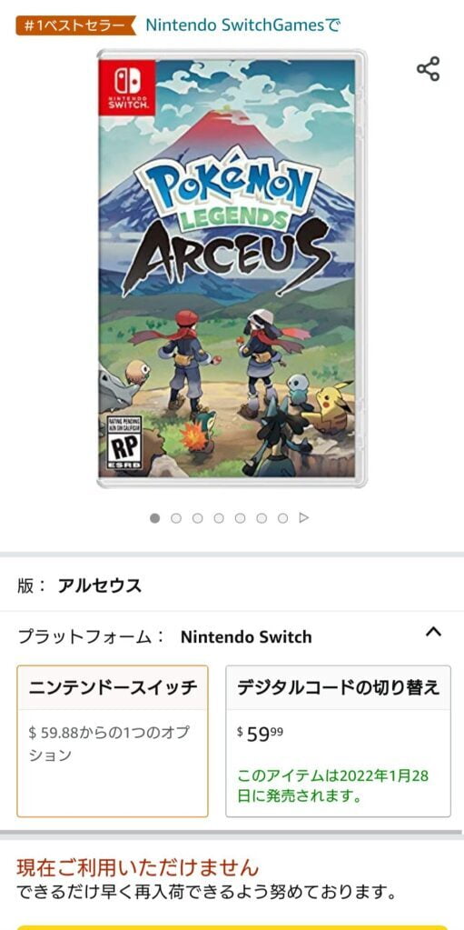 日本だとパッケージにアルセウスVが付いてくるからDLで買うやつは情弱