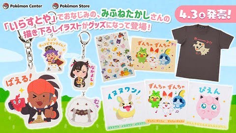 4月3日(土)、フリー素材サイト「いらすとや」のイラストレーター・みふねたかしさんが描き下ろしたポケモンやトレーナーのイラストが、グッズになってポケモンセンターで発売!