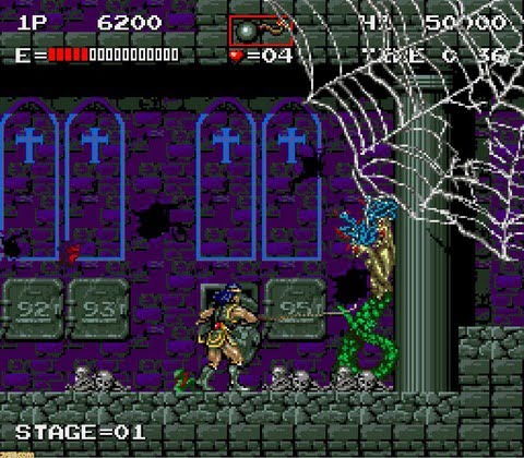 『悪魔城ドラキュラ』は1988年にKONAMIから発売されたアクションゲーム。闇の魔王・ドラキュラ伯爵に攫われた婚約者を助けるため、主人公のシモンがドラキュラの棲む悪魔城へ向かう。