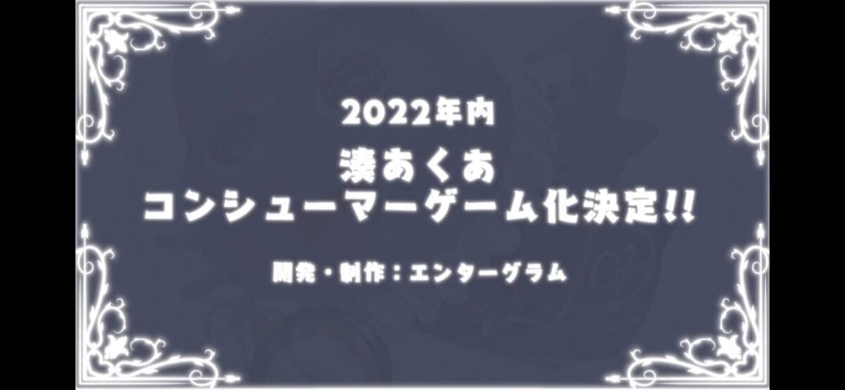 1: NO NAME@ニンテンドーニュース速報 2022/01/28(金) 19:34:31.77 ID:V863eKv00 【⚓️あくあソロライブお知らせ 5/5⚓】 湊あくあコンシューマーゲーム化決定!…