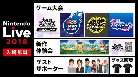 1: NO NAME@ニンテンドーニュース速報 2018/10/19(金) 20:55:54.47 ID:nqcFY93/M [任天堂HP]「Nintendo Live 2018」のページを更新しました。 新作ソフト体験…